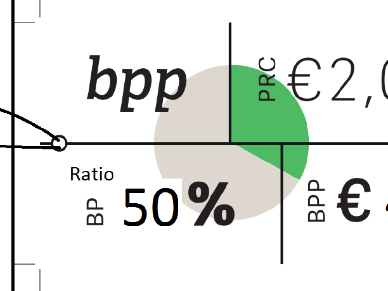 De markt wordt aangestuurd door de marktprijs (private kosten). De maatschappelijke kosten tellen niet mee. Dat is te zien: vervuiling, broeikas effect, onder- en overconsumptie, etc..Best Practice Price laat de maatschappleijke kosten zien: de prijs die het product zou moeten kosten. Een T-shirt koop je al voor +/- €2.50 tegenwoordig. Maar hoeveel zou het T-shirt kosten als iedereen netje was betaald,en gemaakt zonder vervuiling of gifstoffen? Die prijs, de prijs van de best practice,die laten wij zien. Wij betalen maar een deel van de prijs die het product eigenlijk zou moeten kosten. Vaak zeggen we ook: hoe kunnen ze het er voor maken? Op het prijskaartje komt dan het percentage dat je van de Best Practice Price betaald, te staan, de BP-Ratio. Met de BPP op het prijskaartje kan een producent nu concurreren, niet alleen op de marktprijs, maar ook op grond van de maatschappelijke prijs. Met BPP kunnen bedrijven snel sturen op hun productie in de richting van duurzamere producten. Jij als consument kunt nu ook zien hoeveel jij gemiddeld van de maatschappelijke kosten betaald. Op je kassabon zie je jouw gemiddeld percentage staan. Je kunt nu een persoonlijk doel stellen: Ik wil van 38% naar 40%.